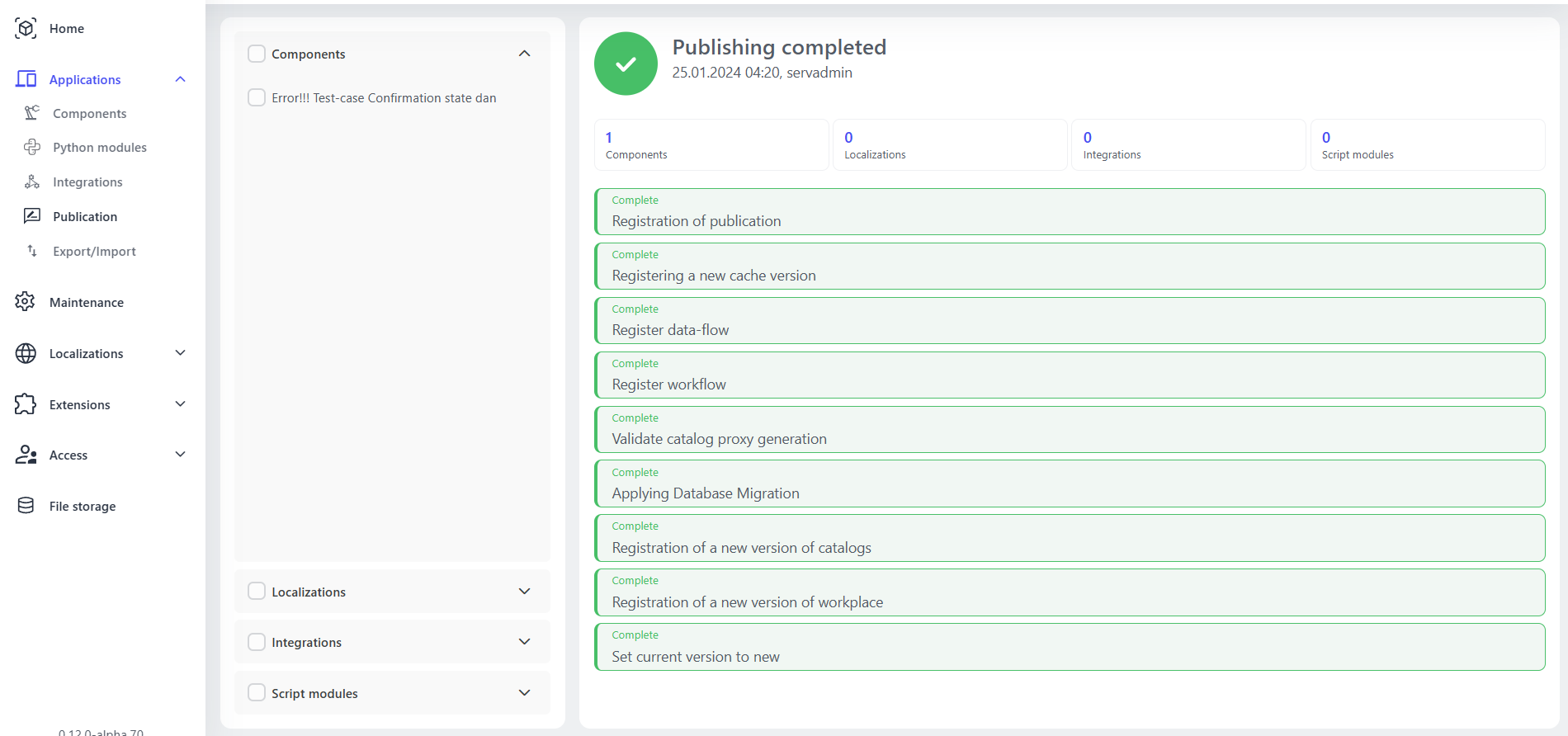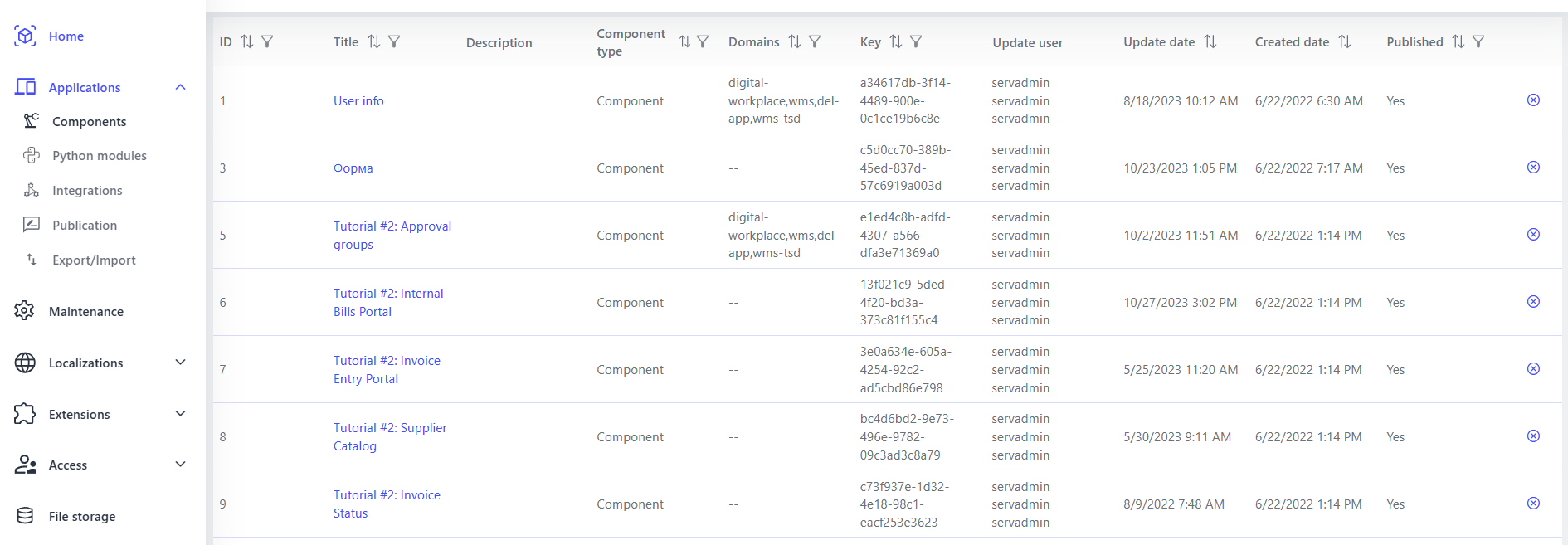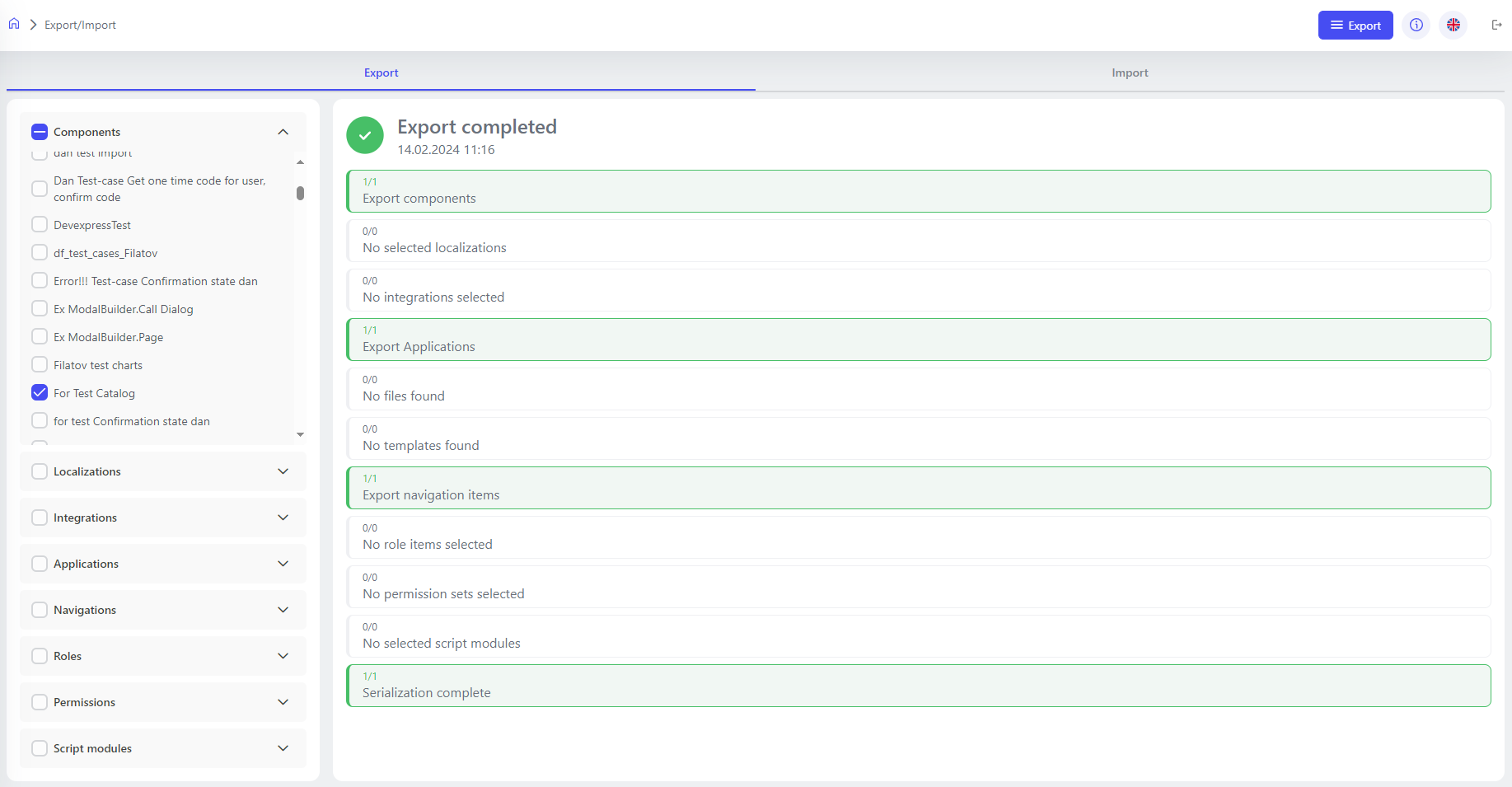 Sobald Sie Ihre Komponenten konfiguriert und vorbereitet haben, ermöglicht Ihnen dieser Abschnitt, sie für die zukünftige Verwendung zu veröffentlichen. Sie können Komponenten, Lokalisierungen, Integrationen und sogar Python-Module auswählen, die in Ihre Veröffentlichung aufgenommen werden sollen, wodurch der Bereitstellungsprozess effizient und organisiert wird. Lesen Sie hier mehr: Komponenten veröffentlichen