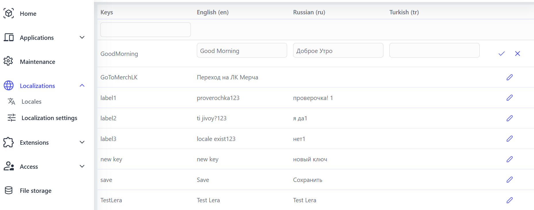 - Nehmen Sie Änderungen an den Lokalisierungswerten für die gewünschten Sprachen vor.