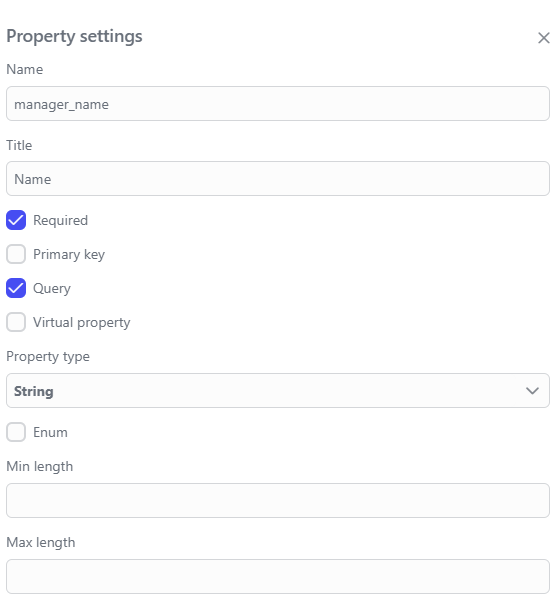 car_vin: tipo de propriedade -string, título -VIN, configurações -required,primary key,query;car_brand: tipo de propriedade -string, título -Car Brand, configurações -required,query;car_model: tipo de propriedade -string, título -Car Model, configurações -required,query;year_of_manufacture: tipo de propriedade -integer, título -Year of manufacture, configurações -required,query;color: tipo de propriedade -string, título -Color, configurações -required,query;price: tipo de propriedade -number, título -Price of the car, configurações -required,query;is_manager_exists: tipo de propriedade -boolean, título -Is manager exists, configurações -query;choosen_manager: tipo de propriedade -catalog, componente -Transaction Specialiststítulo -Chosen Manager, configurações -query;is_archieved: tipo de propriedade -string, configurações -query.