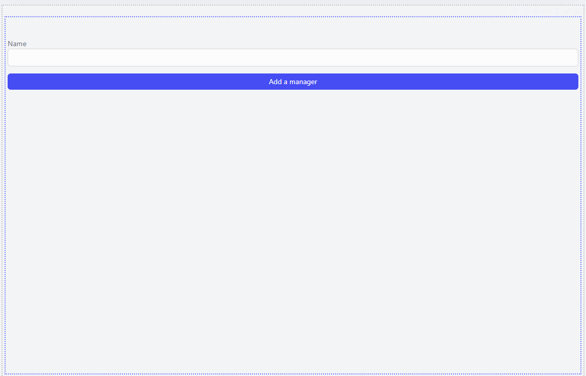 O primeiro componente será um formulário simples para adicionar novos gerentes e consistirá em uma única propriedade personalizada: